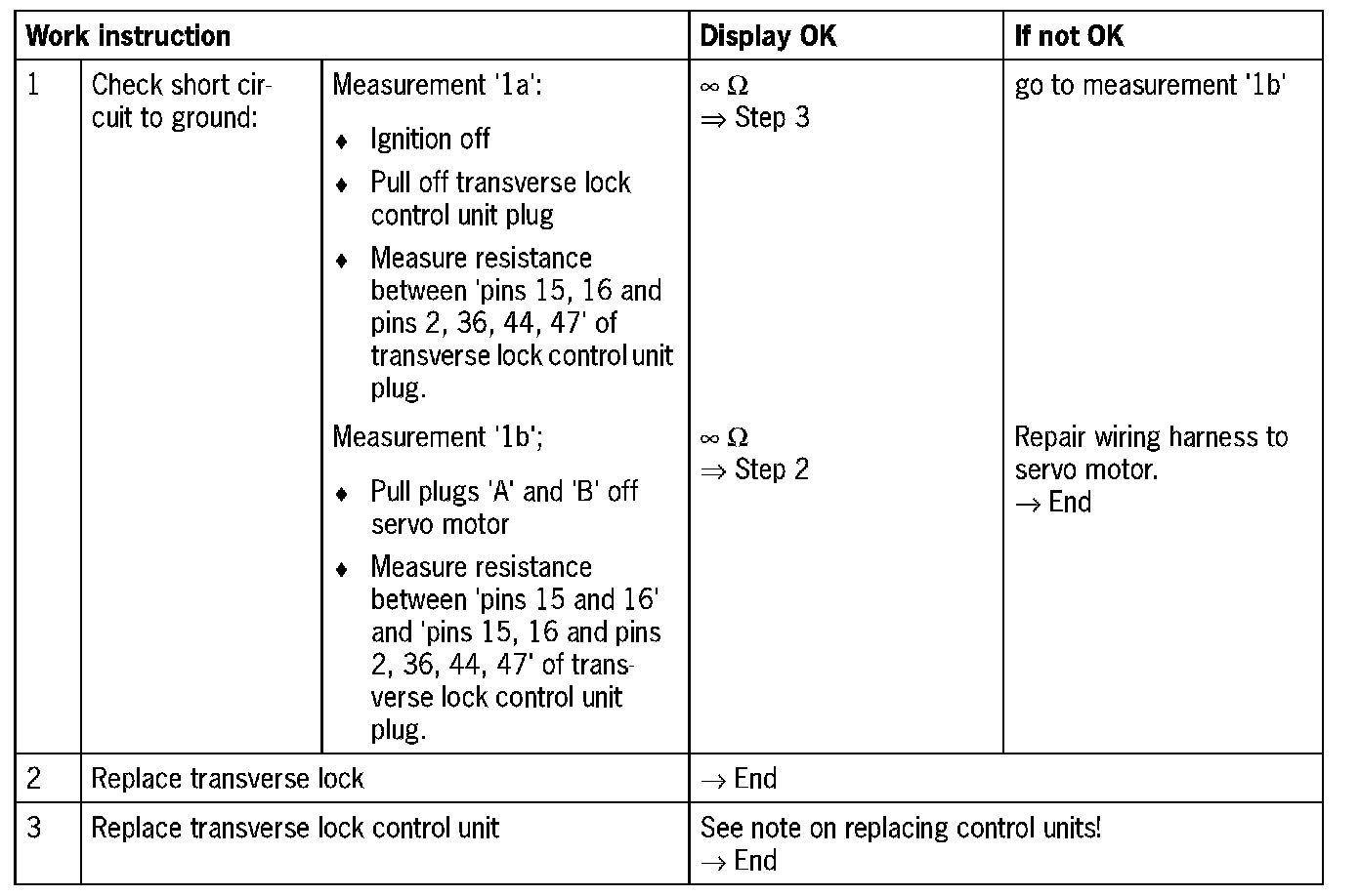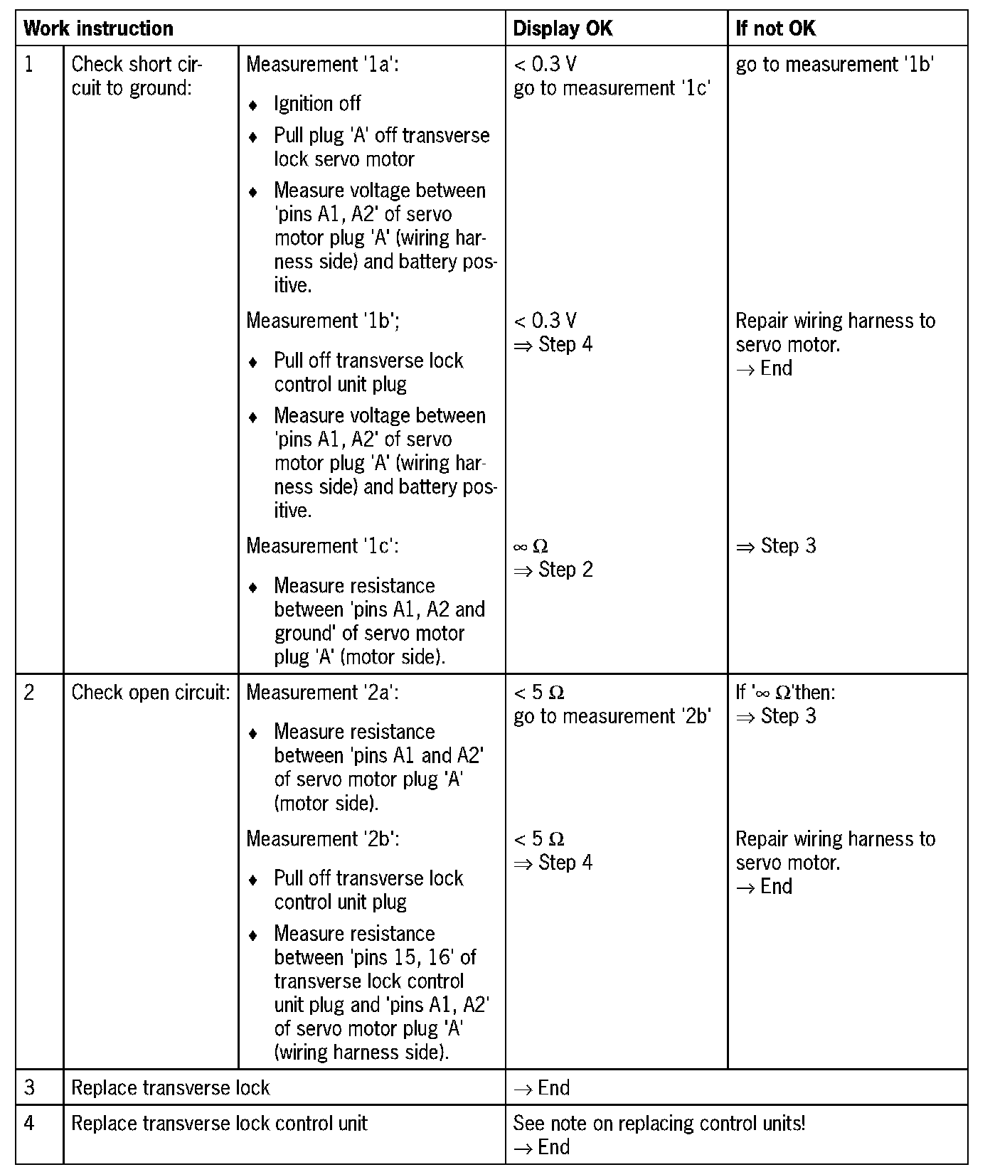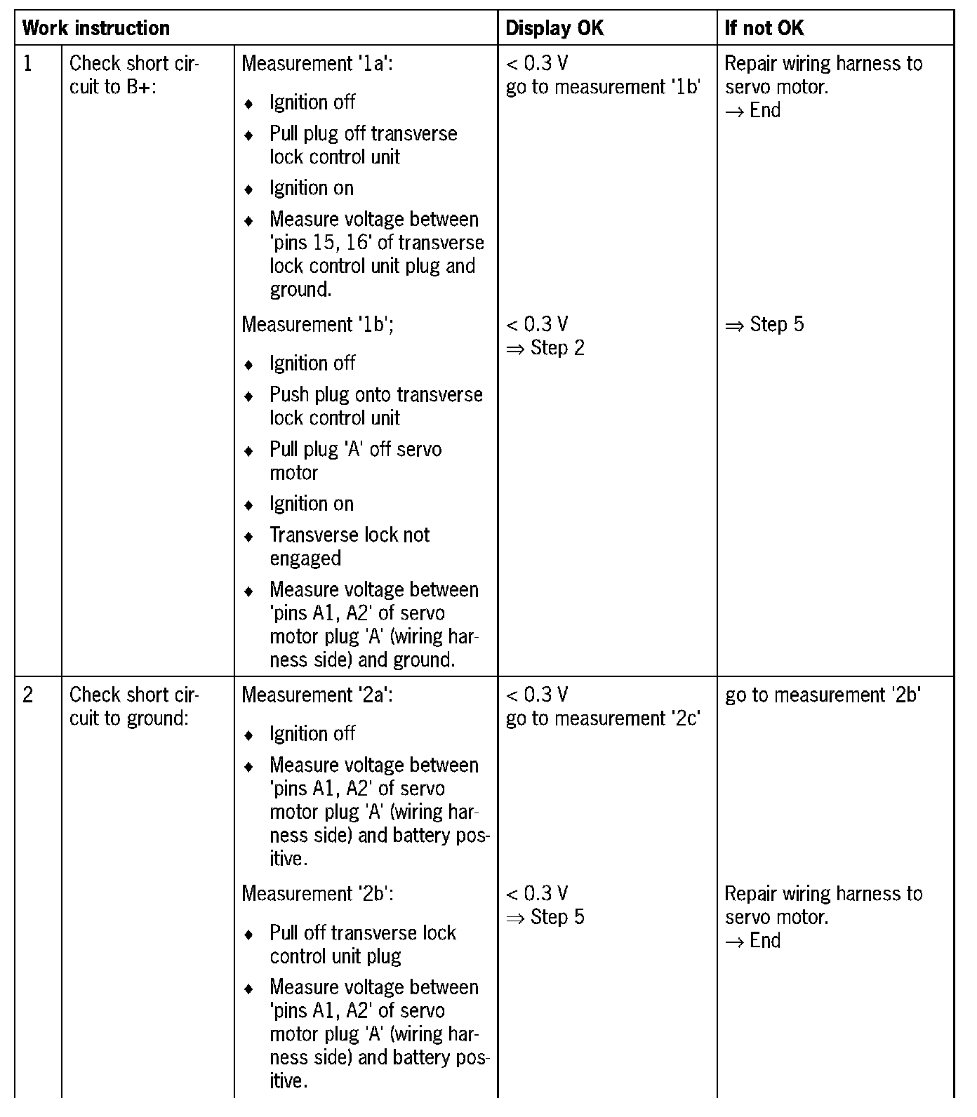 - 'Short circuit to B+': control unit faulty (servo motor runs continuously)