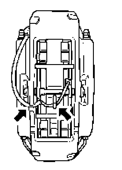4. Install warning contact wire at disc brake pads and expanding spring.
