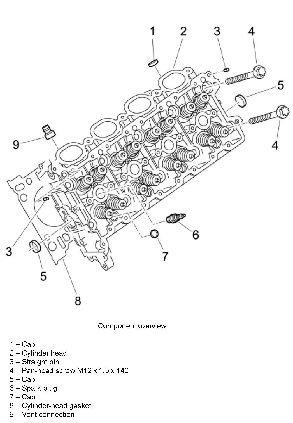 2. Fit cylinder head. Insert M12 x 1.5 x 140 cylinder head screws (screws can be used again).