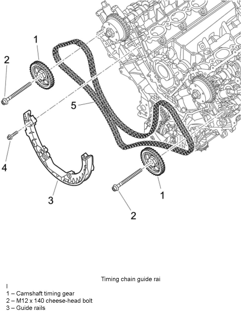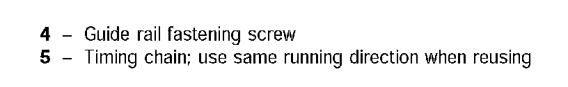 8. Fasten guide rail of timing chain -3-. To do this, tighten the fastening screws -4-. Initial tightening: 11 ft-lb. Final tightening: 90°