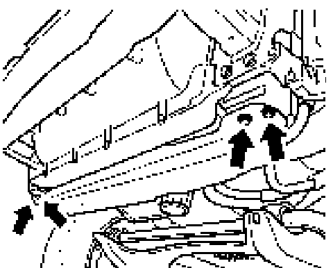 25. Undo the three fastening screws (a/f 16) on the left and right spring struts. The screws are loosened from inside the engine compartment. One of the three screws for each spring strut is located in the radiator tank. The screws must not be reused.