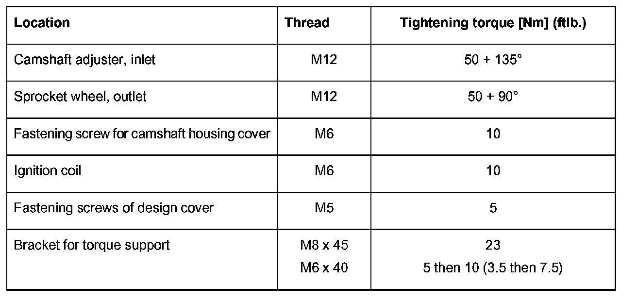 Note: There is a diamond washer between the camshaft and camshaft wheel or camshaft adjuster. This is to be replaced after the corresponding wheel has been removed. If the fastening screw of the wheel is only loosened in order to adjust the timing (1 or 2 revolutions), the diamond washer does not need to be replaced.