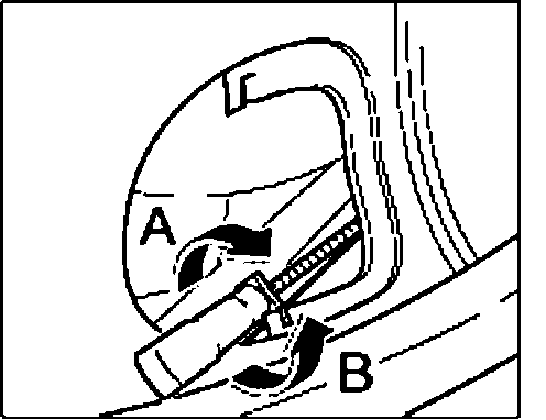 5. The dipped beam headlight is then adjusted horizontally: adjustment -A- and -B-.