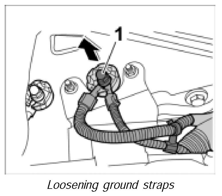 5. Screw down fastening nut -1- and take off ground strap with the twist lock.