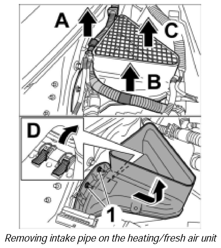 Removing intake pipe on the heating/fresh air unit