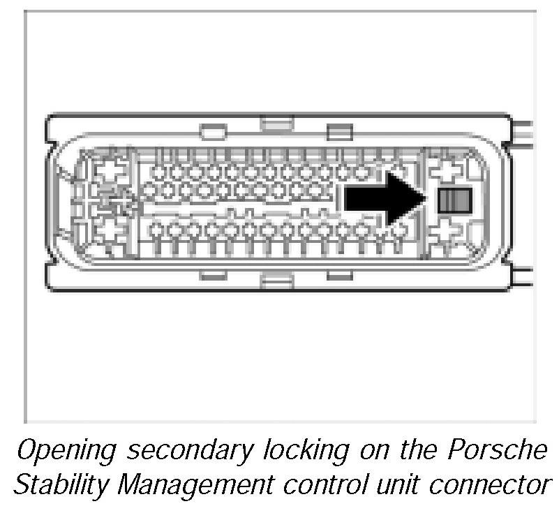 11. Open secondary locking on the Porsche Stability Management control unit connector.