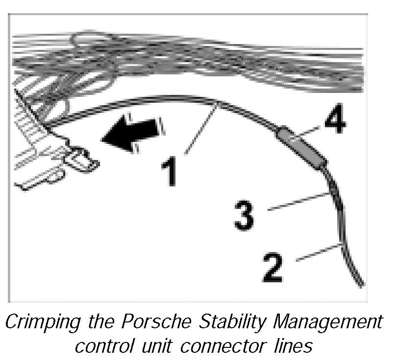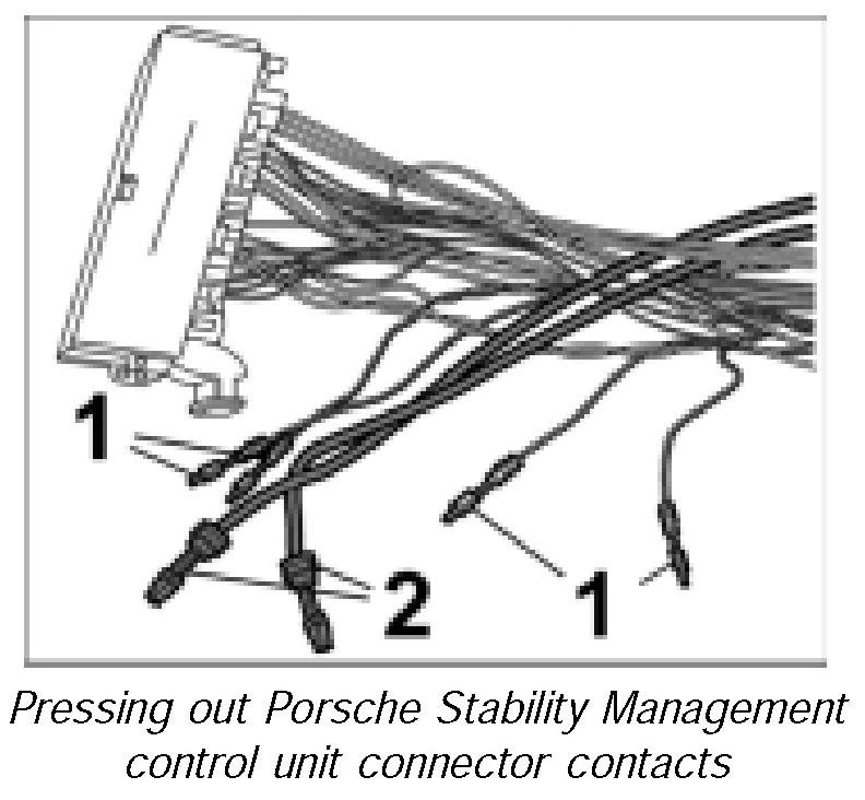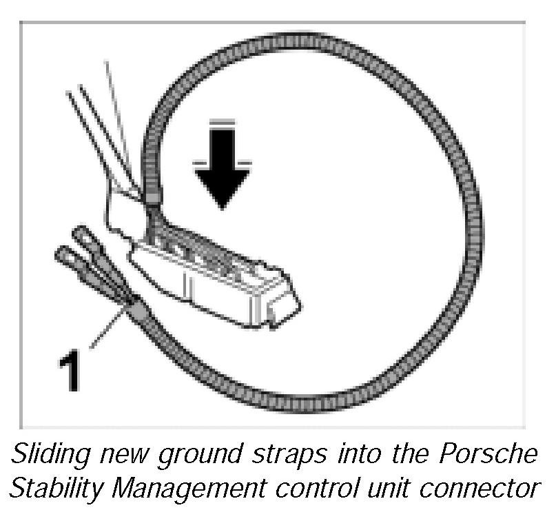 - If in addition to the ground straps more than one half of the remaining contacts are corroded, the complete connector for the Porsche Stability Management control unit with the ground straps must be replaced.
