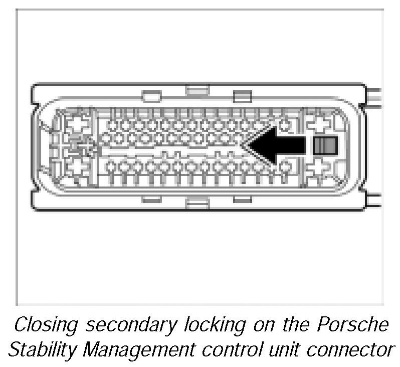 22. Close secondary locking on the Porsche Stability Management control unit connector.