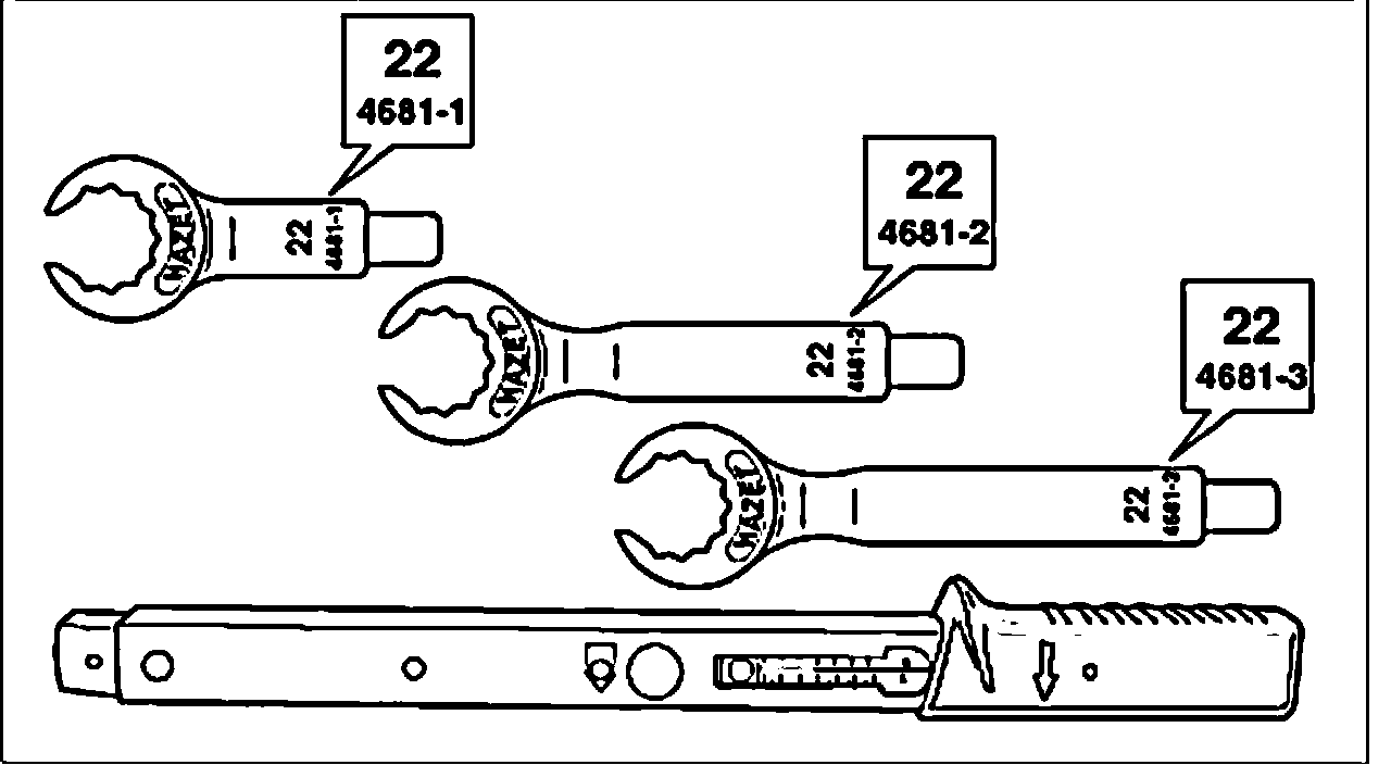 2. Tighten oxygen sensor with oxygen sensor wrench 97 and tightening torque of 40 - 50 Nm (30 - 37 ftlb.).