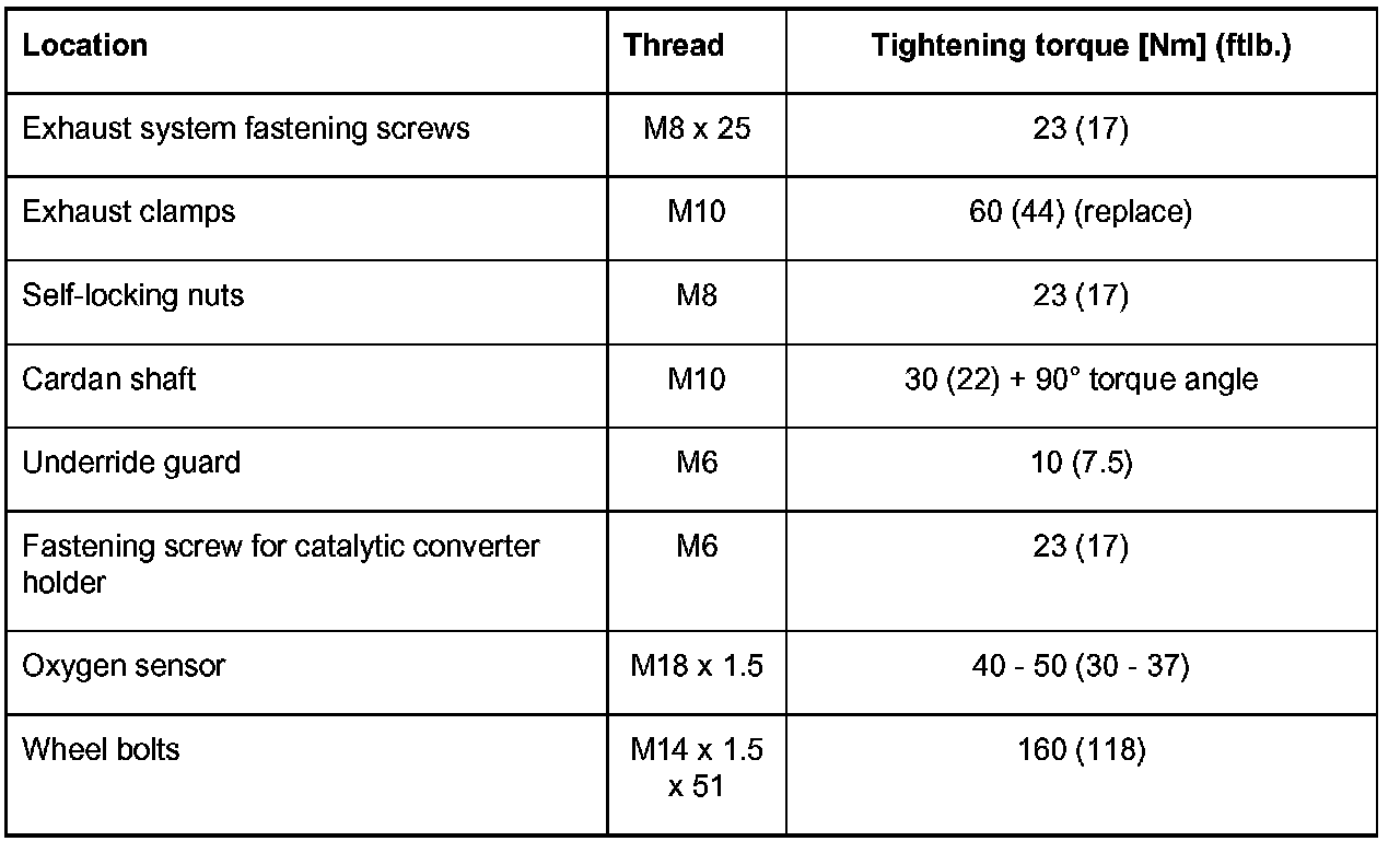 Tightening torques