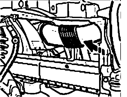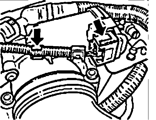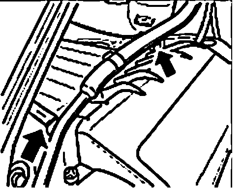 10. The coolant bleeder hose and the coolant overflow hose must be clipped back onto cylinder bank 1 - 4 on the air cleaner housing.
