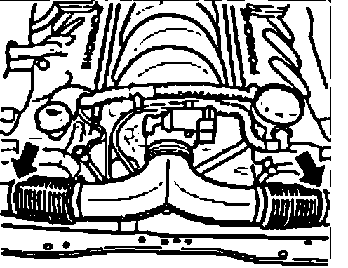 7. Disconnect the air flow sensor connections. To do this, undo the hose clamps on the left and right on the bellows and pull the bellows off the air flow sensors.