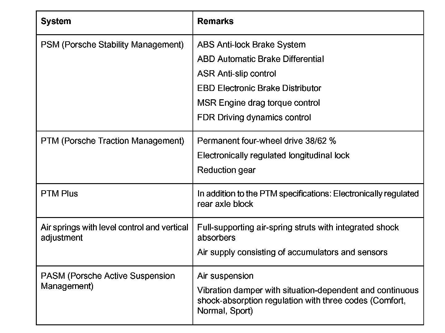 The following systems are used in both the Cayenne S and Cayenne Turbo: