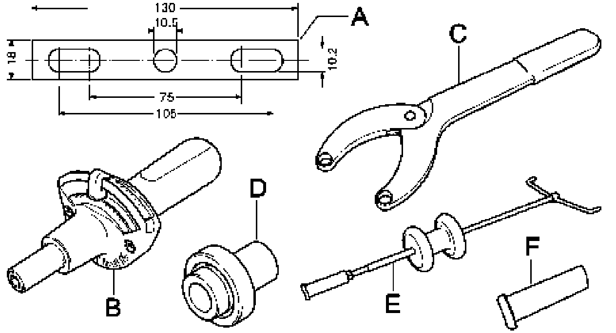 6. Remove drive flange with special tool striker VW 771/1 and shop-made tool.