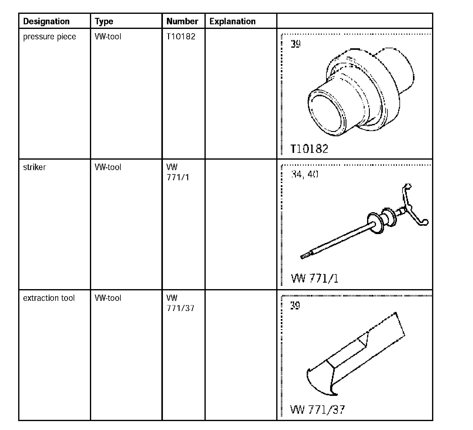 5. Remove sealing ring with special tool striker VW 771/ 1 and extraction tool VW 771/ 37.