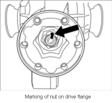 1. Mark position of nut on drive flange -arrow- at shaft.