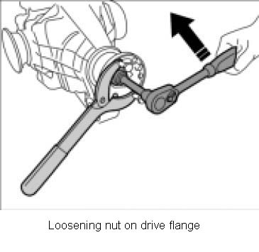 3. Unscrew nut on drive flange. To do this, block flange with special tool arm bracket 3435.
