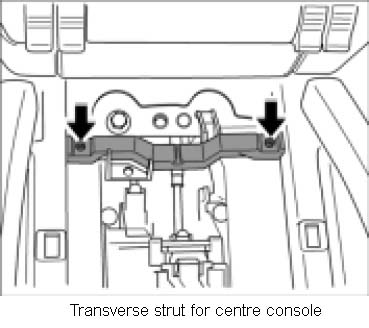 2. Screw in fastening screws -arrows- on top section of gearshift bracket. Tightening torque: 6.5 ftlb.