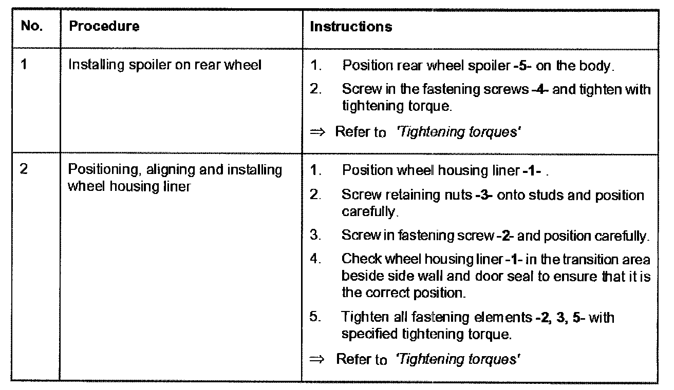 Removing and Installing Rear Wheel Housing Liners