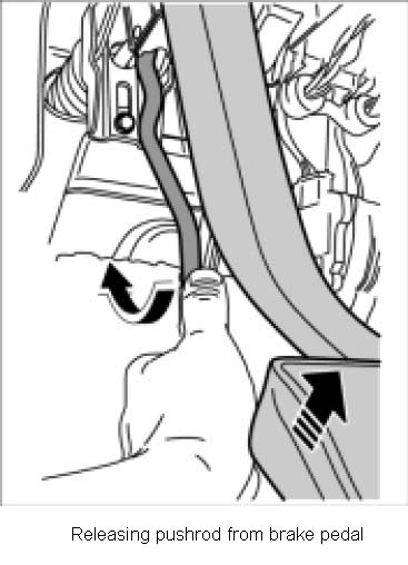 8. Disengage the brake pushrod from the brake pedal mounting using the unlocking tool T10189. Observe the following procedure for this purpose:
