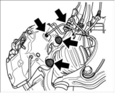 ^ To gain better access for removal of the brake caliper, it helps to turn the steering fully either to the right or the left.