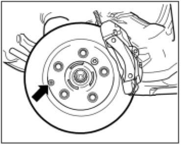In the event of unfavorable tolerances, the brake pads may prevent the brake disc from turning freely. If this happens, the brake pads must be pressed back slightly and evenly with the piston resetting fixture (replaces P83) NR.144, see Workshop Equipment Manual, Chapter 2.4 -direction arrow-!