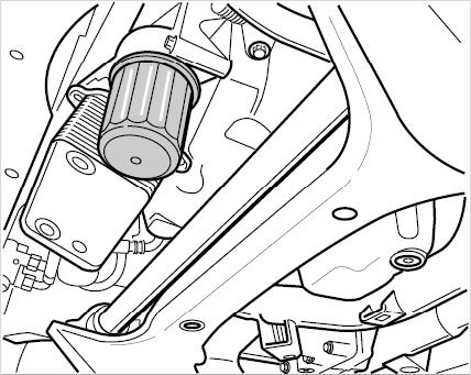 6. Remove the oil filter housing vertically downwards. Drain the remaining oil into a disposal container.