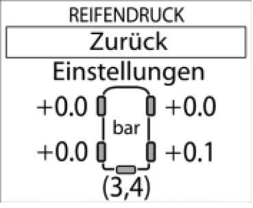 ^ Due to the pressure and temperature relationship (0.1 bar/10°C), the actual pressures displayed in the - Basic tire pressure screen in the multi-function display, or on the pressure gauge of the tire-inflating device, can deviate from the required pressure specified at 20°C on the tire pressure plate: if the tire air temperature is significantly above (higher values) or significantly below (lower values) 20°C. Changes in tire pressure are displayed after a maximum delay of one minute in the >> Adjustments <<.