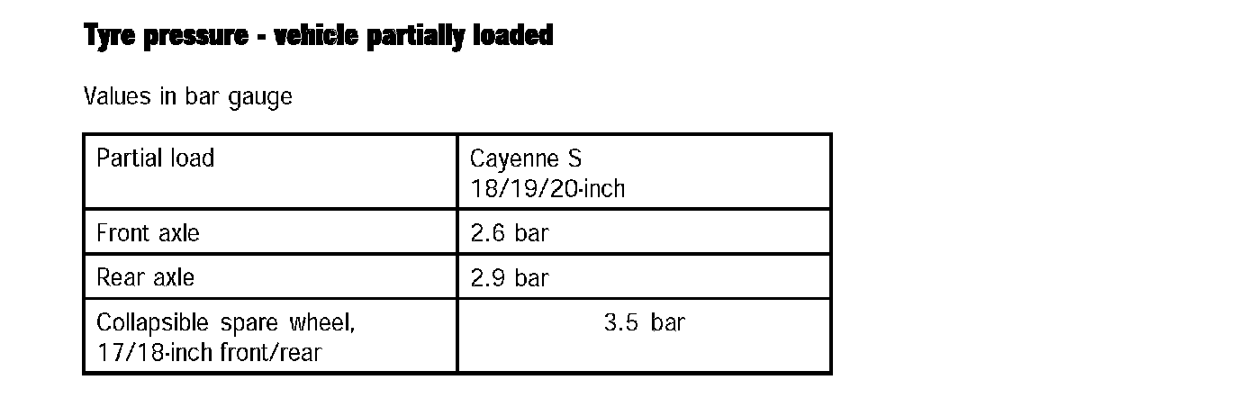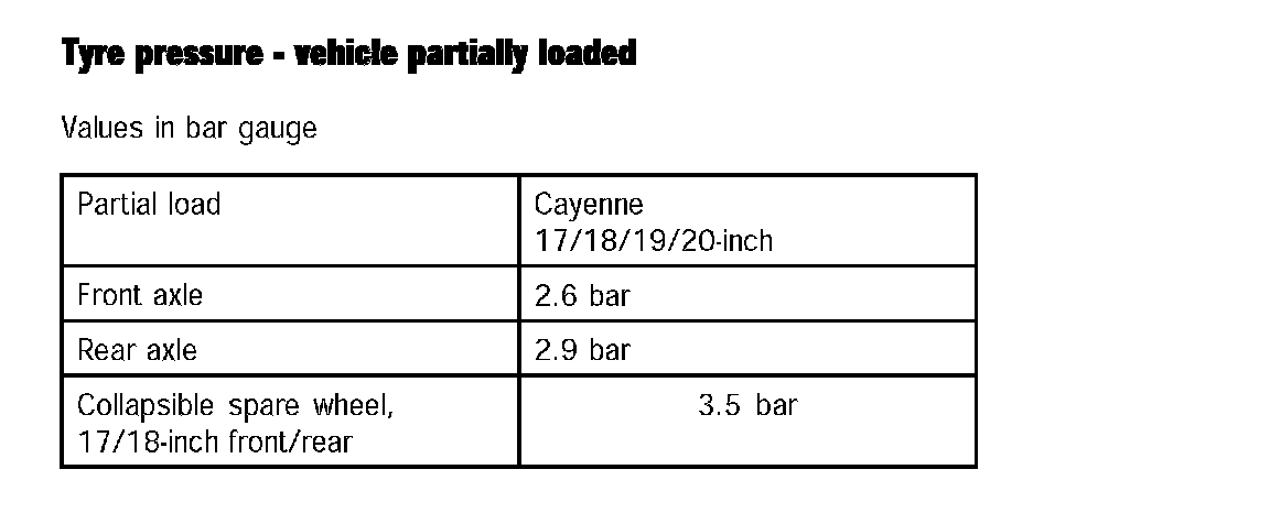 Tyre Pressure - Vehicle Partially Loaded: