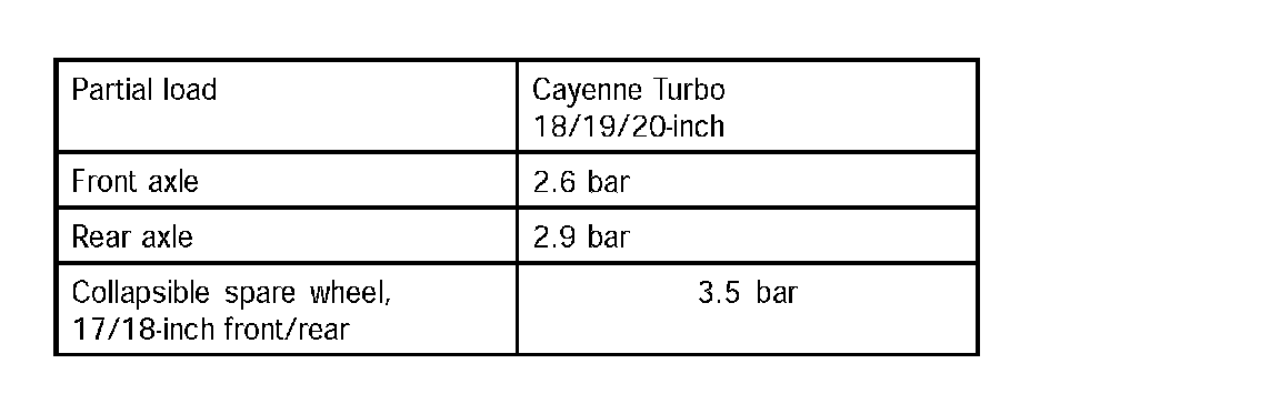 Partial load: The tire pressure is specified for a load of up to 3 people + 21 kg of luggage.