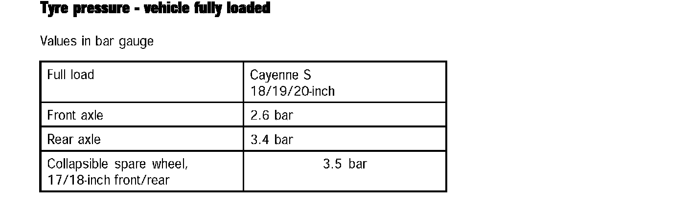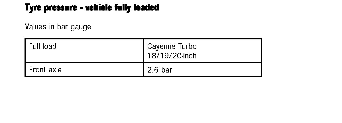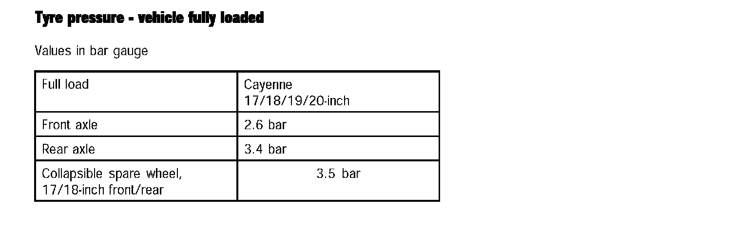 Tyre Pressure - Vehicle Fully Loaded: