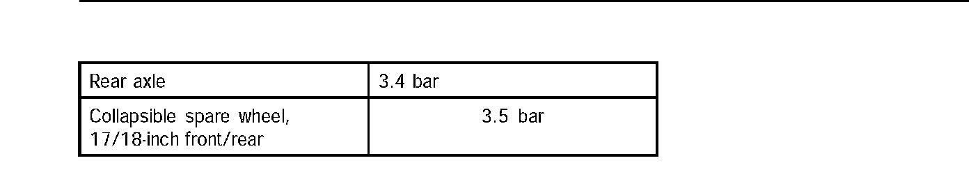 The spare wheel on the carrier is inflated to 3.4 bar gauge pressure max. During operation, tires are to be adjusted to the gauge pressure specified for the particular vehicle axle and load condition.