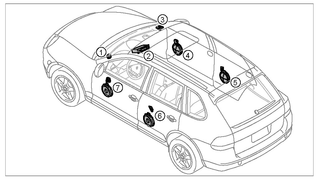 7 - Full-range driver, right D-pillar.