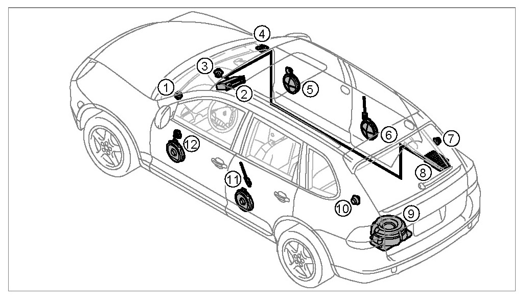 10 - Full-range driver, left D-pillar.