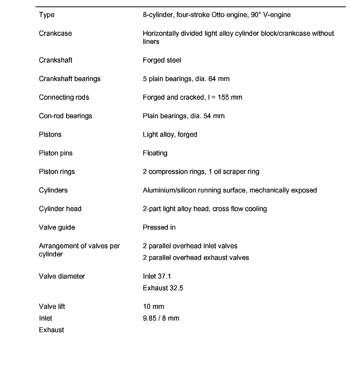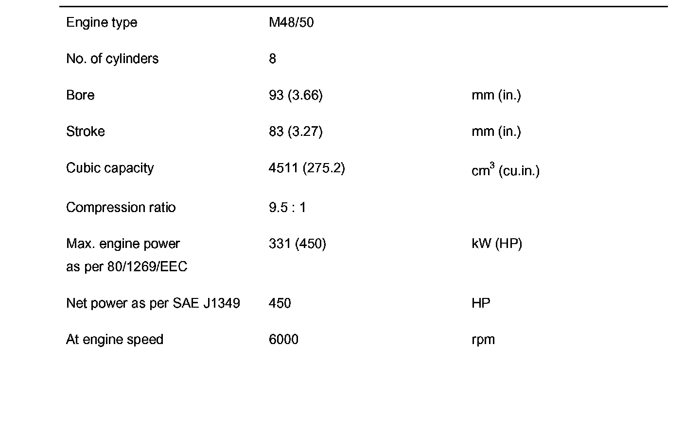 Technical data for engine M48/50 (Cayenne Turbo)