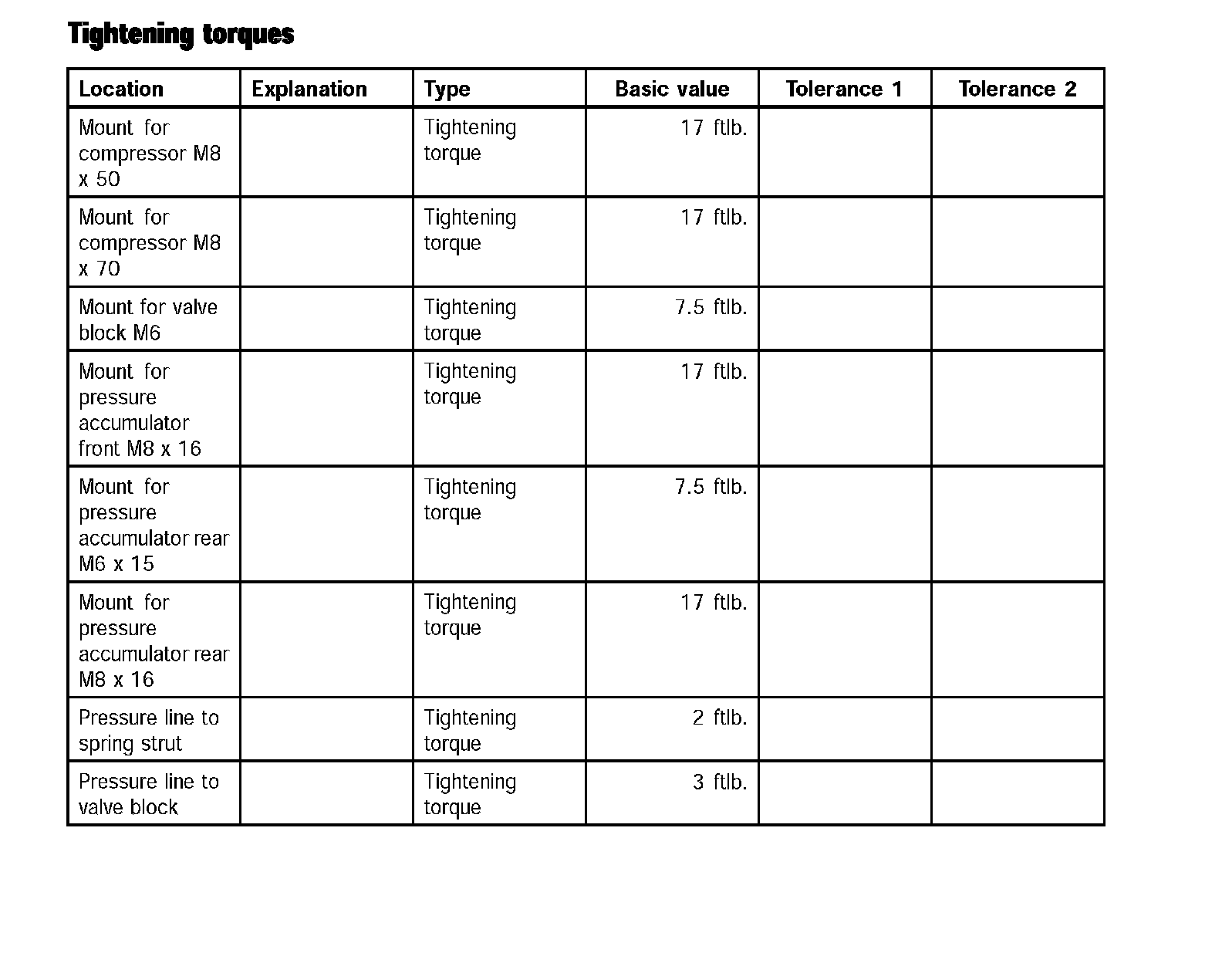Tightening torquesTightening Torques: