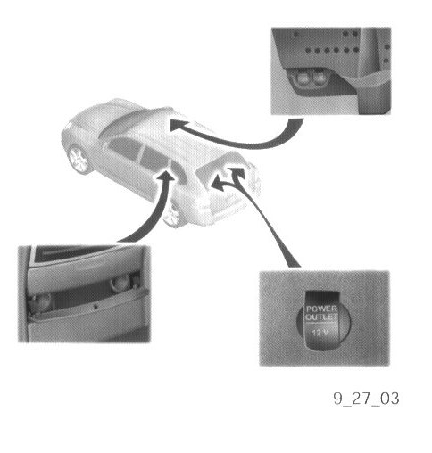 - Two sockets in the luggage compartment in the side trim panels in front of the left and right storage compartments.