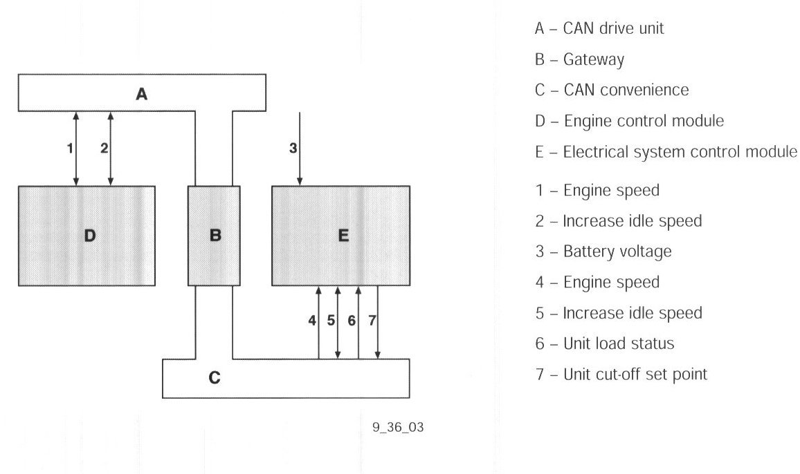 The electrical system control module functions primarily to protect the battery against cyclical overcharging. A large quantity of input data is managed by the electrical system control module, since electrical system management controls driver-related functions and system integrity must always be maintained. Electrical system status is determined primarily by comparing the measured voltage with the permissible voltage lower limit.