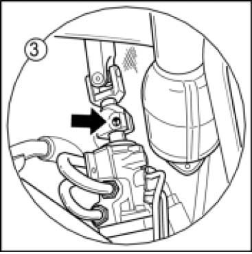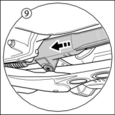 10. Turn steering gear -arrow- to the rear by approximately 90-100 degrees.