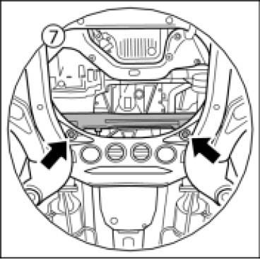 7. Remove the fastening screws of steering gear -arrows-.