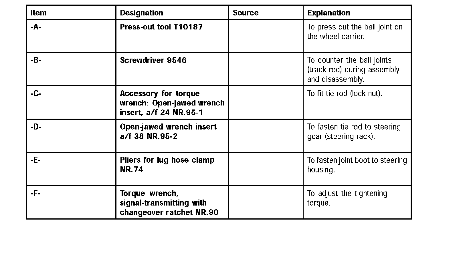 Removing and installing tie rodTools