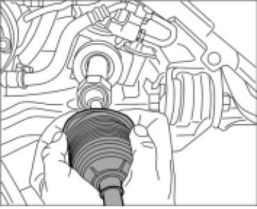 ^ If the joint boot is to be used again, before installing inspect for wear (cracks, slits) and check that sealing surfaces are clean.