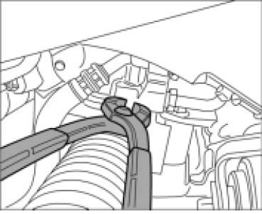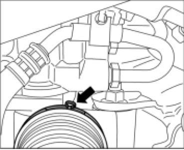 5. Cut open and remove large clamp -arrow- of joint boot using a pair of side cutters.