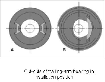 When using the pressure pieces, the direction arrow shows the direction for pressing the rubber-metal mounts in or out on the trailing arm.