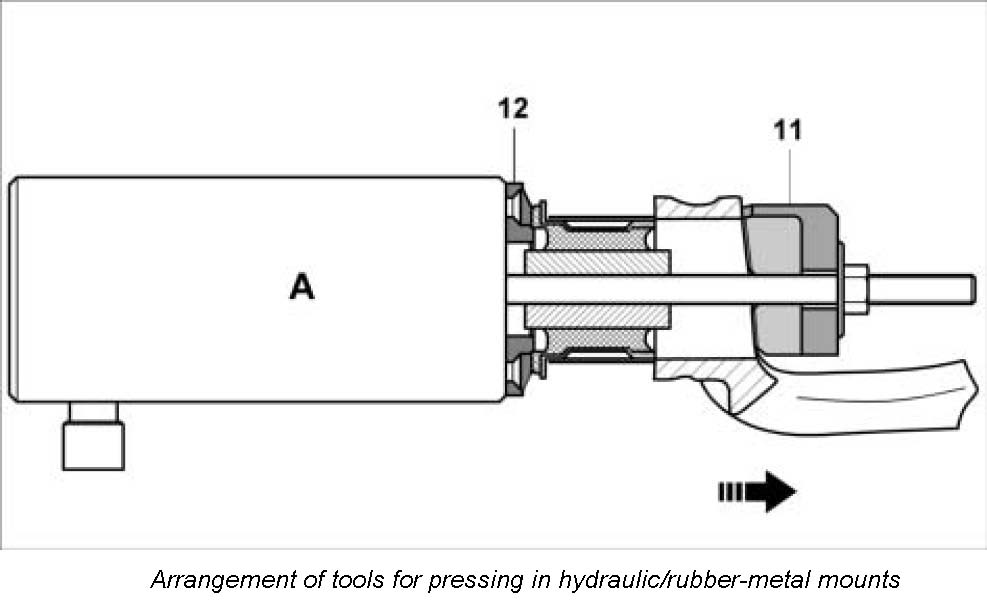 ^ Arrangement of tools for pressing out hydraulic/rubber-metal mounts.