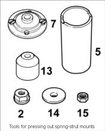 The pressure pieces are used as follows Arrangement of tools for pressing out spring-strut mounts.