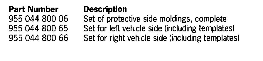 The description of retrofitting refers to the right side of the vehicle. Proceed accordingly when fitting the left protective side moldings. The door gap dimensions must be checked and, if necessary, adjusted before beginning the work. The protective moldings are generally delivered primed.
