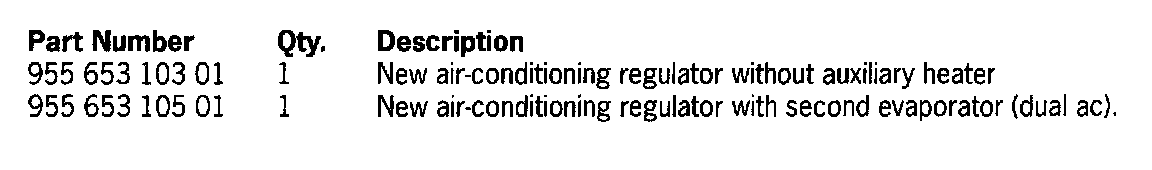 Therefore, we ask that the affected vehicles listed below have their air-conditioning regulator replaced during the Porsche Owner's next visit to your workshop.