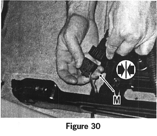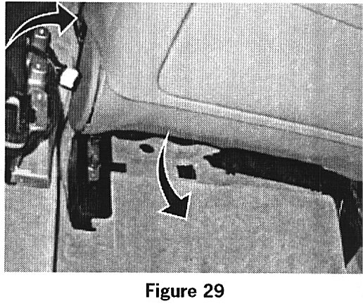 29. Route the THB cable under the passenger seat (arrows in Figure 29).