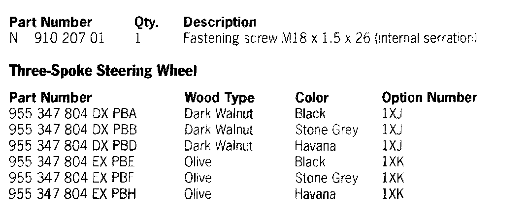 Therefore, we ask that the affected vehicles listed below have their steering wheels replaced during the Porsche owner's next visit to the workshop.